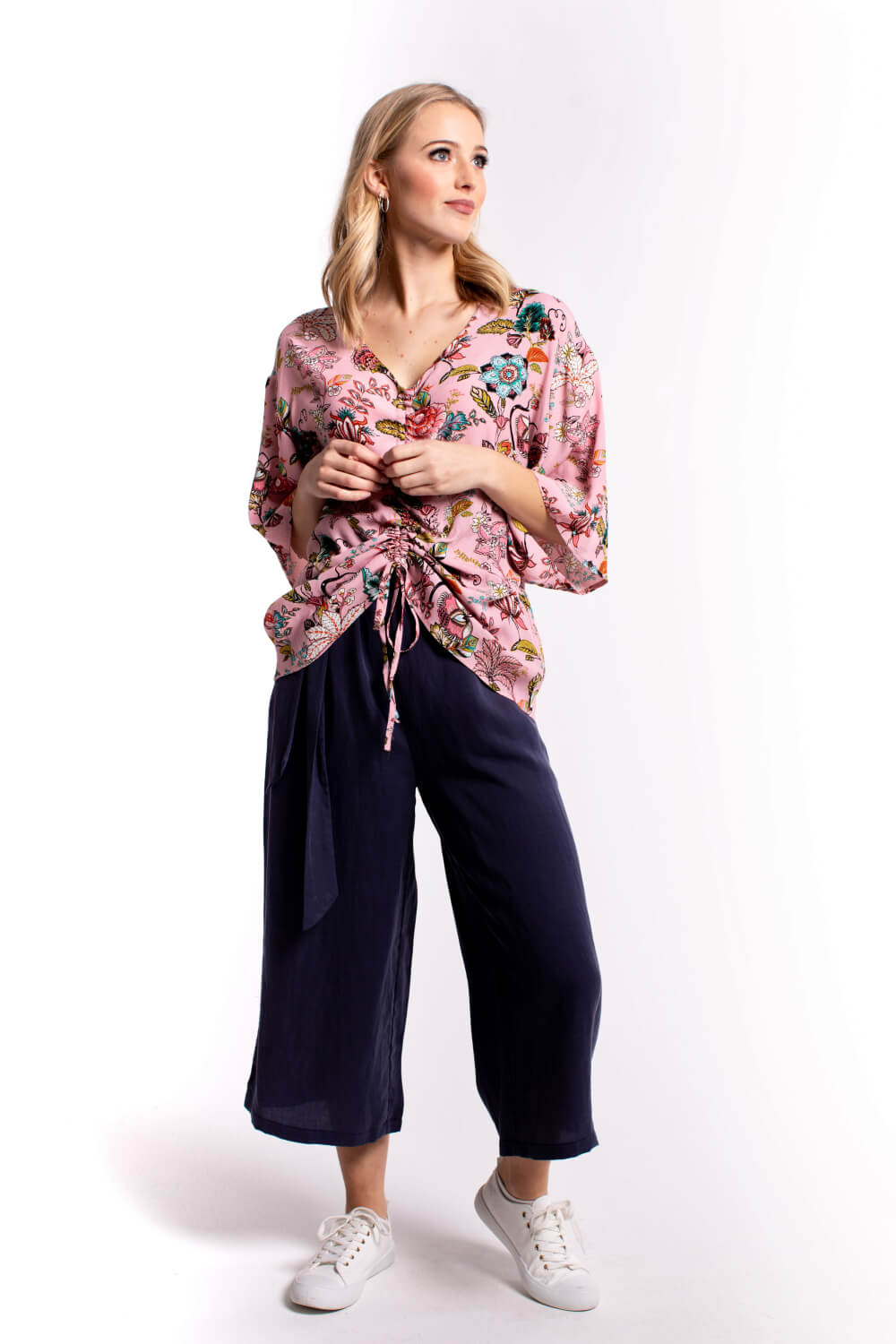 A cropped wide leg pant with ultra flattering paper bag style tie waist. Dress up or down.