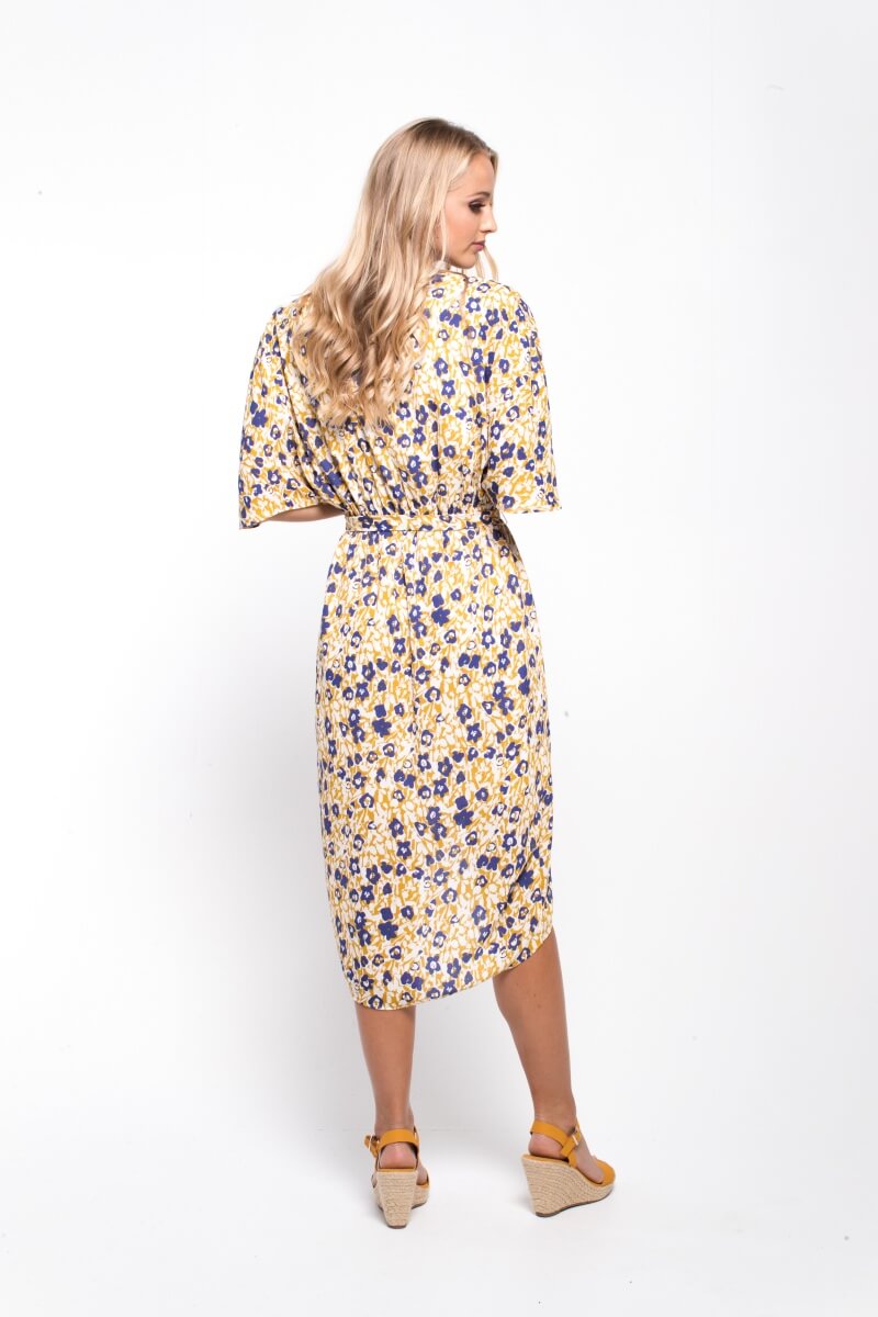 Bring cheerful energy to your wardrobe rotation with this sunny dress. Featuring a v-neckline, flutter sleeve and high-low hem.