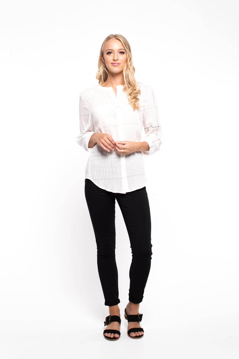 This versatile shirt works wonders in your wadrobe with button front and an easy fit.