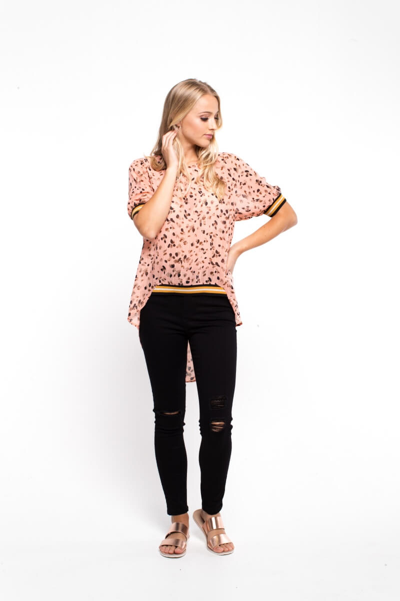 Stylish and relaxed this top features a puff sleeve and sporty band finishes for an edgy fashion look.