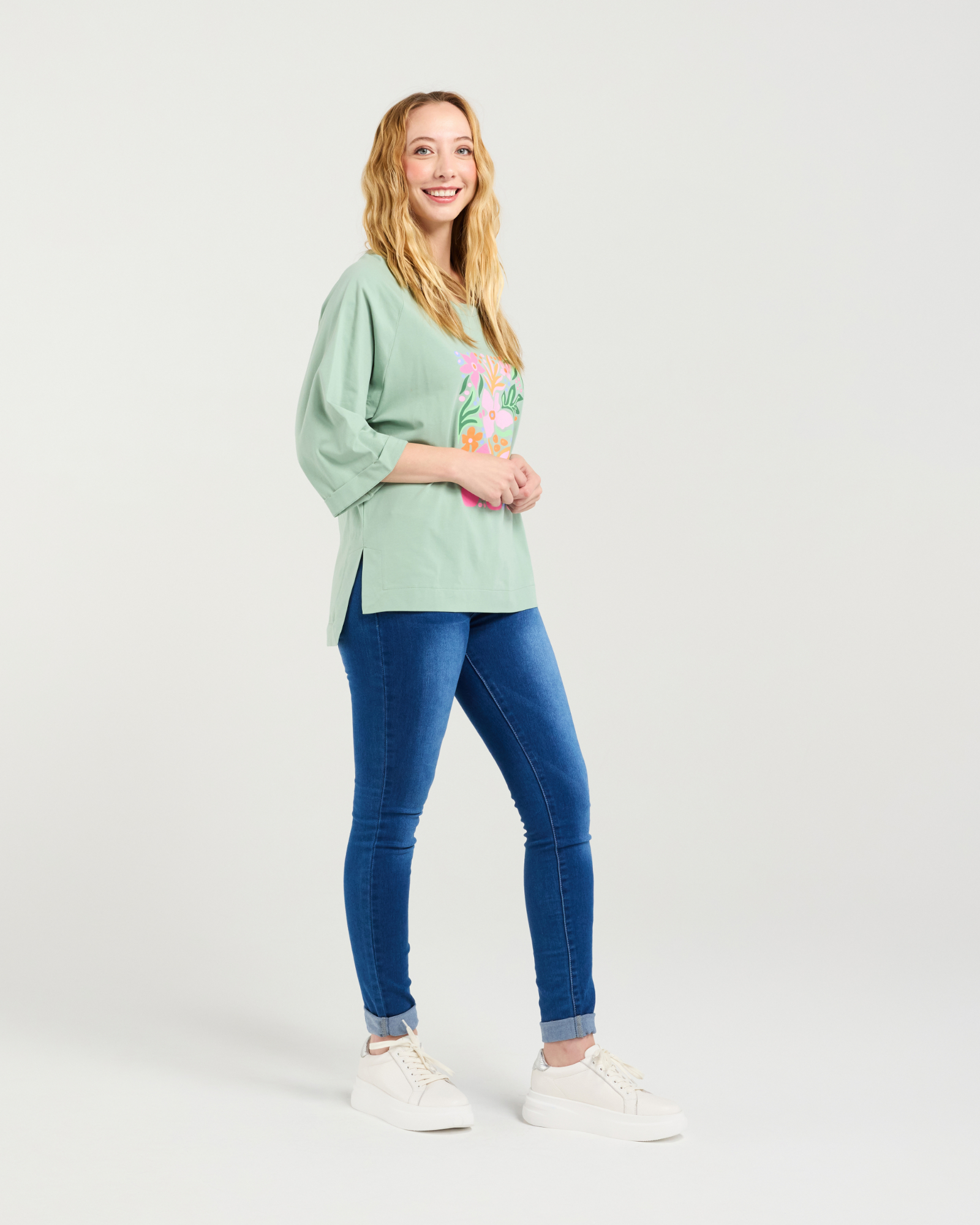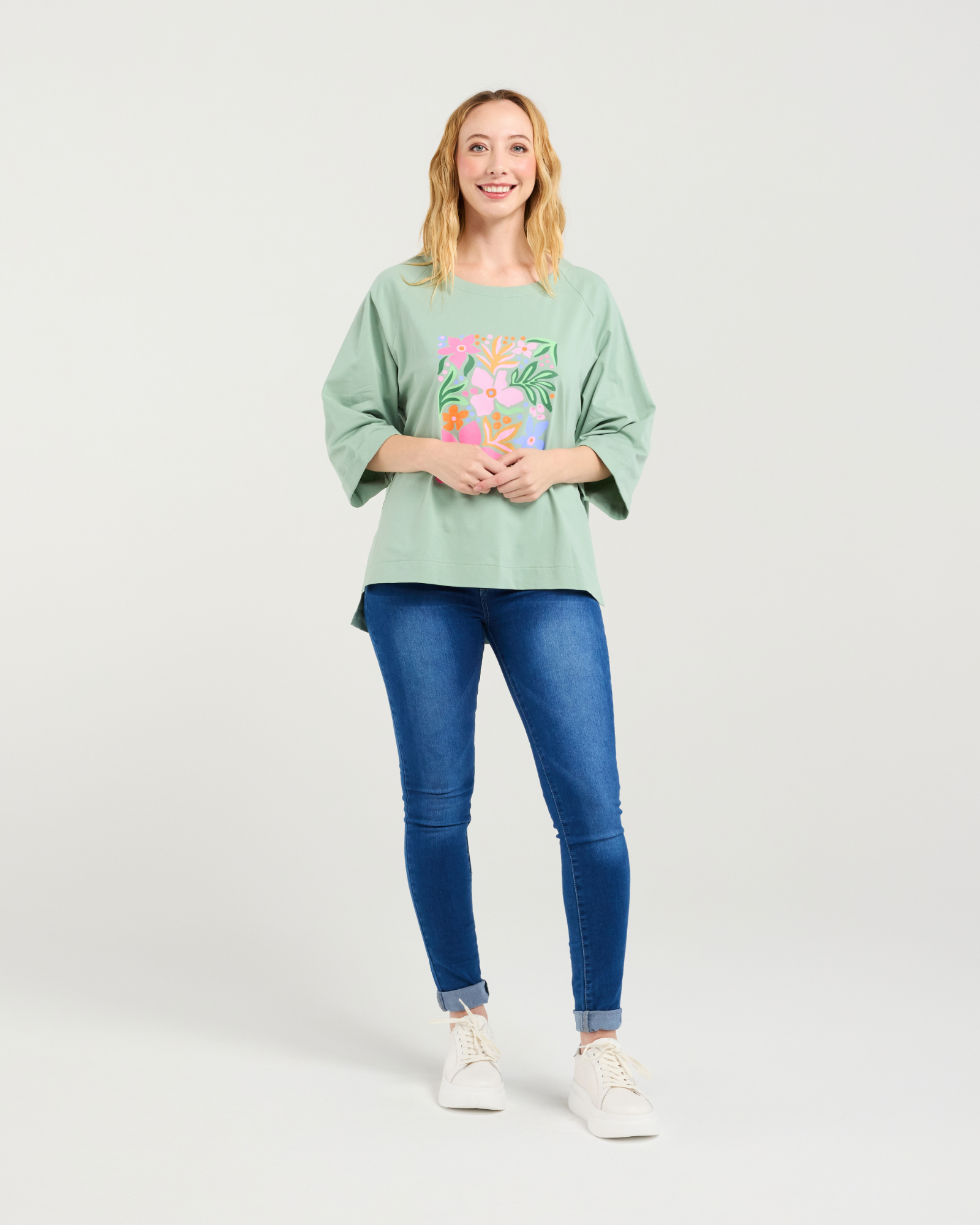 A fresh take on floral, this t-shirt features flared sleeves that hit just below the elbow, paired with a round neckline for a relaxed, modern silhouette. The bold floral print adds a striking pop, and it�s available in multiple colors � a style for every mood.