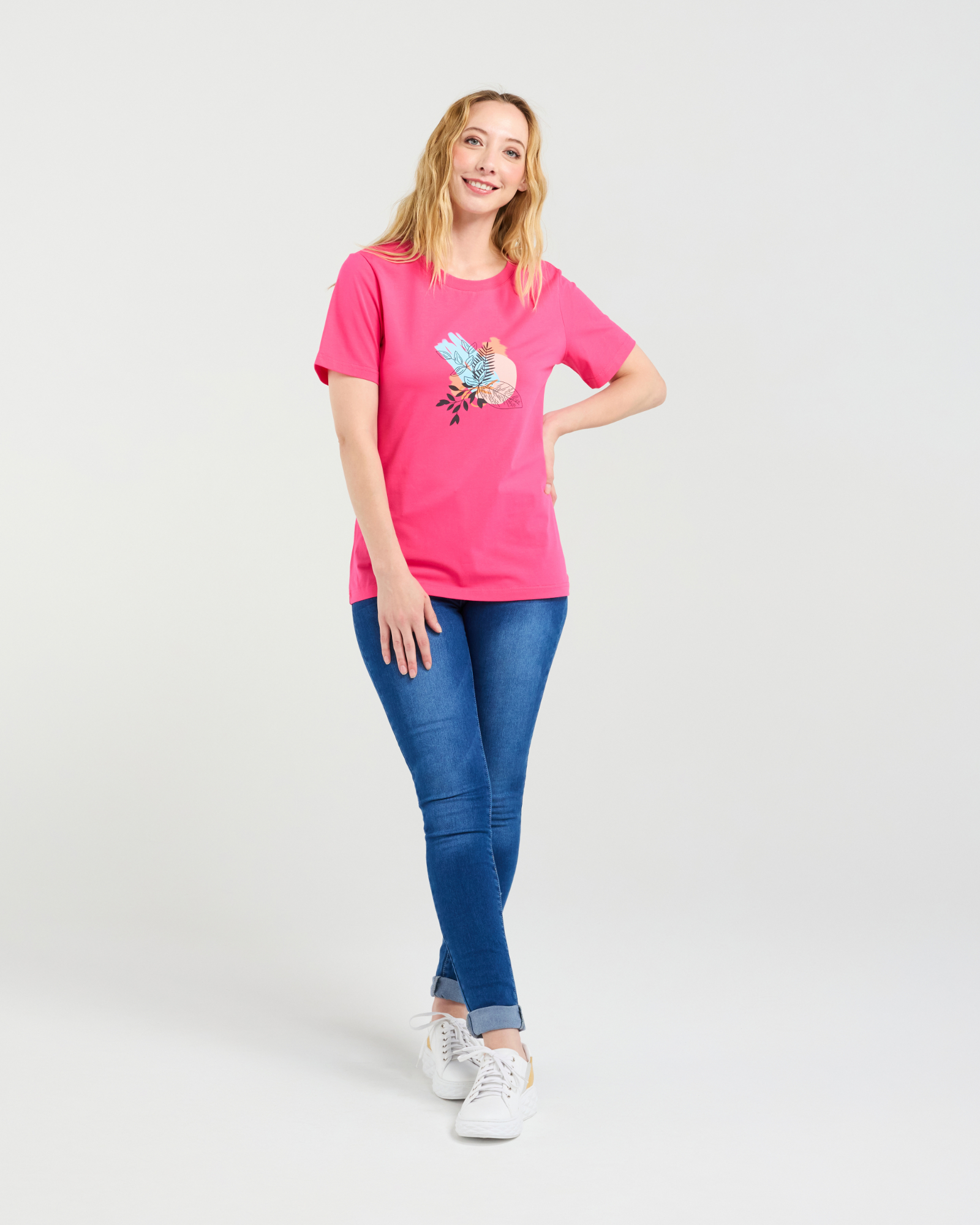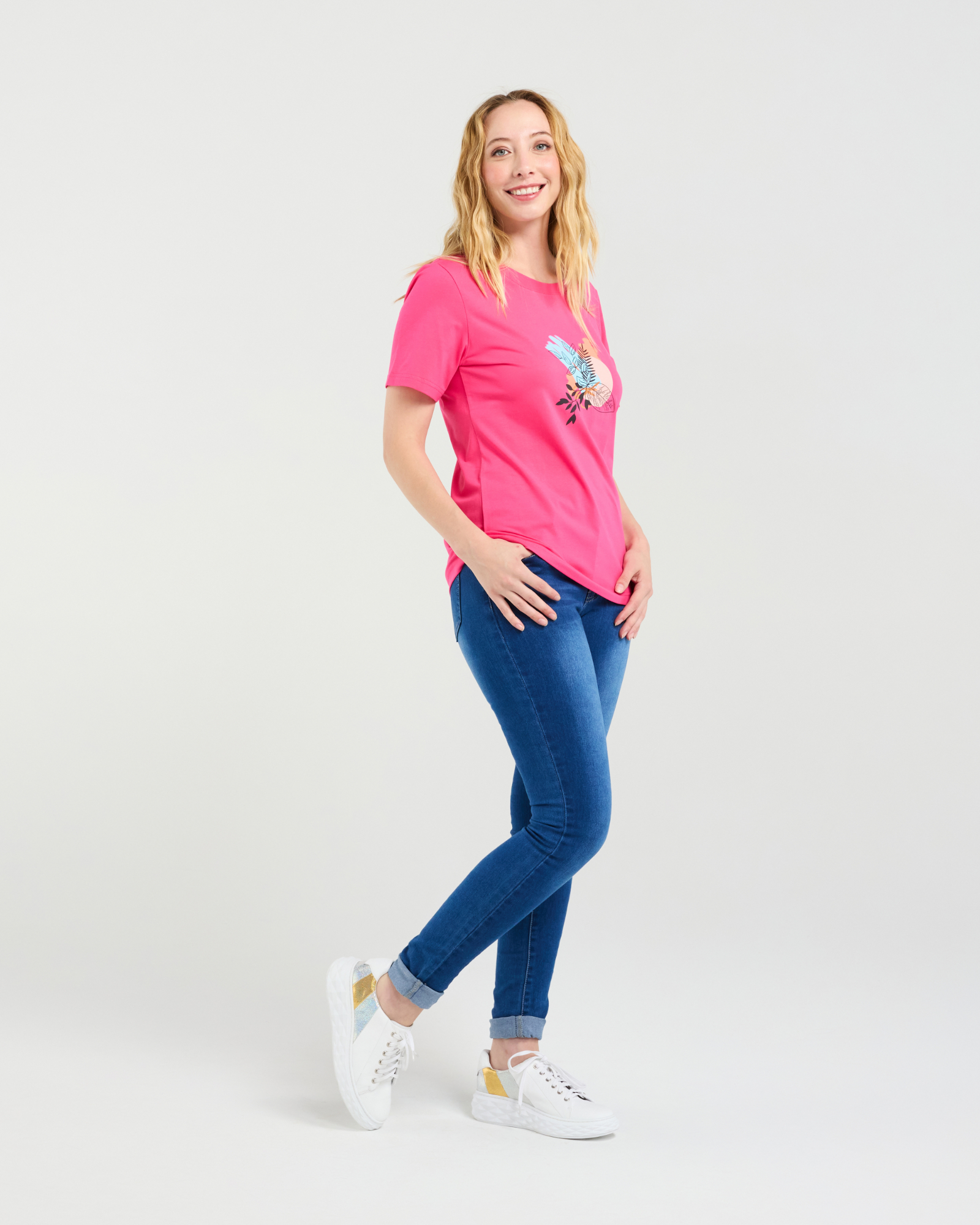 A timeless classic, this t-shirt features a vibrant leaf print on the front, adding a touch of nature-inspired style. Available in multiple colors, it�s a versatile piece that pairs effortlessly with any wardrobe.