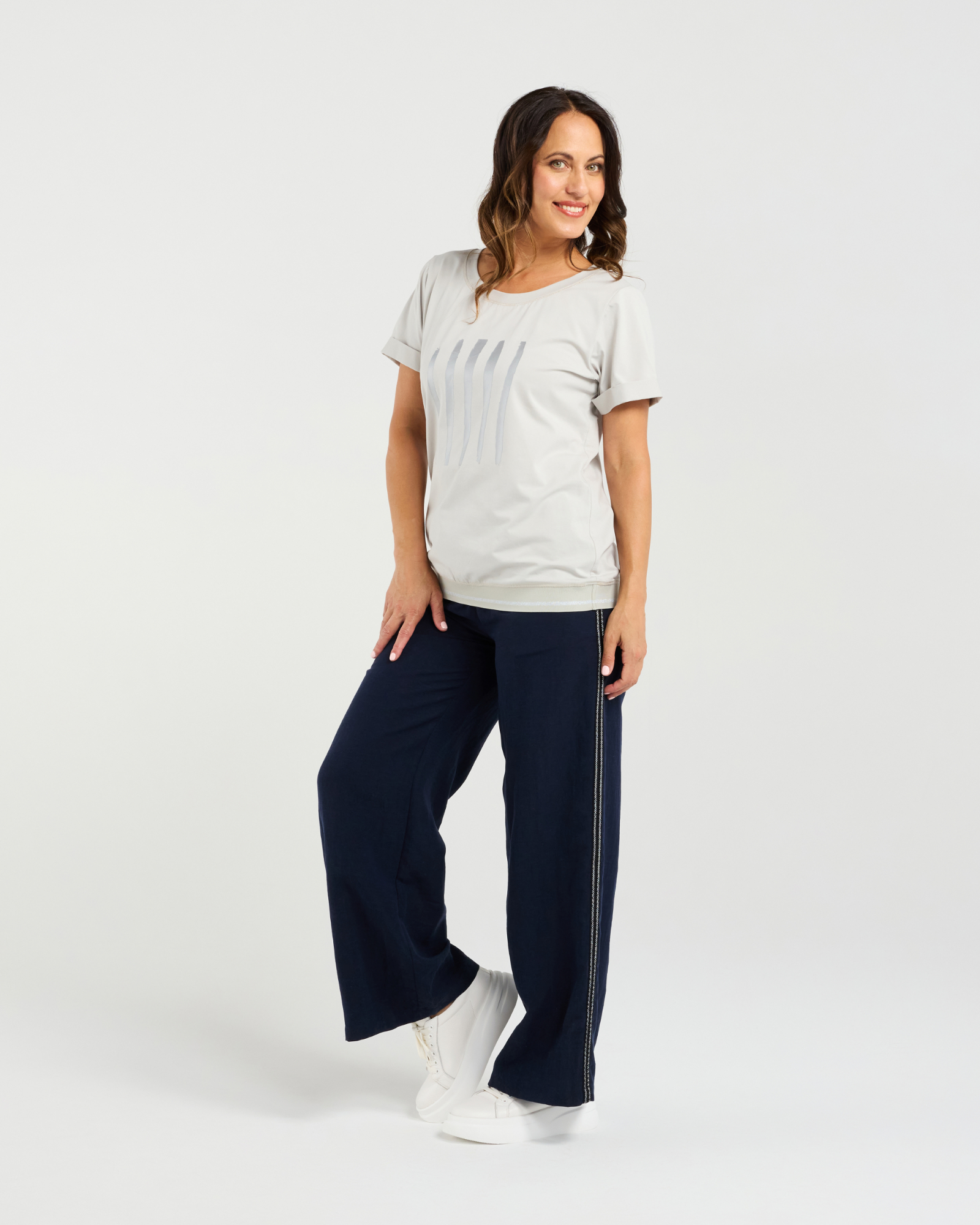 Stay effortlessly cool in this short-sleeve tee featuring an eye-catching abstract graphic. Designed with a relaxed fit for comfort and finished with rib elastic at the hem for a stylish, laid-back look.