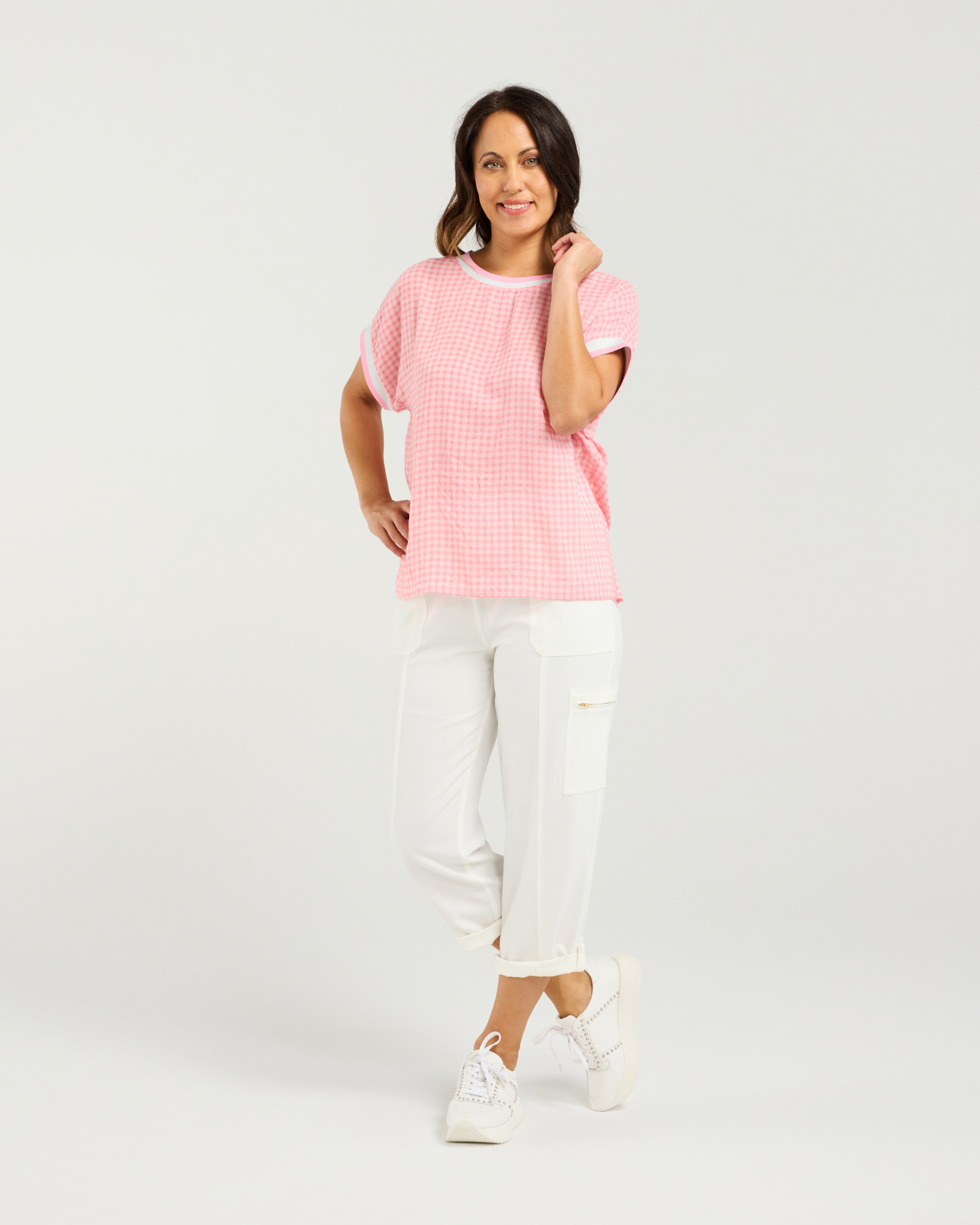 Playful yet polished, this relaxed-fit t-shirt stands out in a check print that brings a touch of pattern to everyday styling. With ribbed sleeve bands and a ribbed neckline, it balances comfort and structure effortlessly.