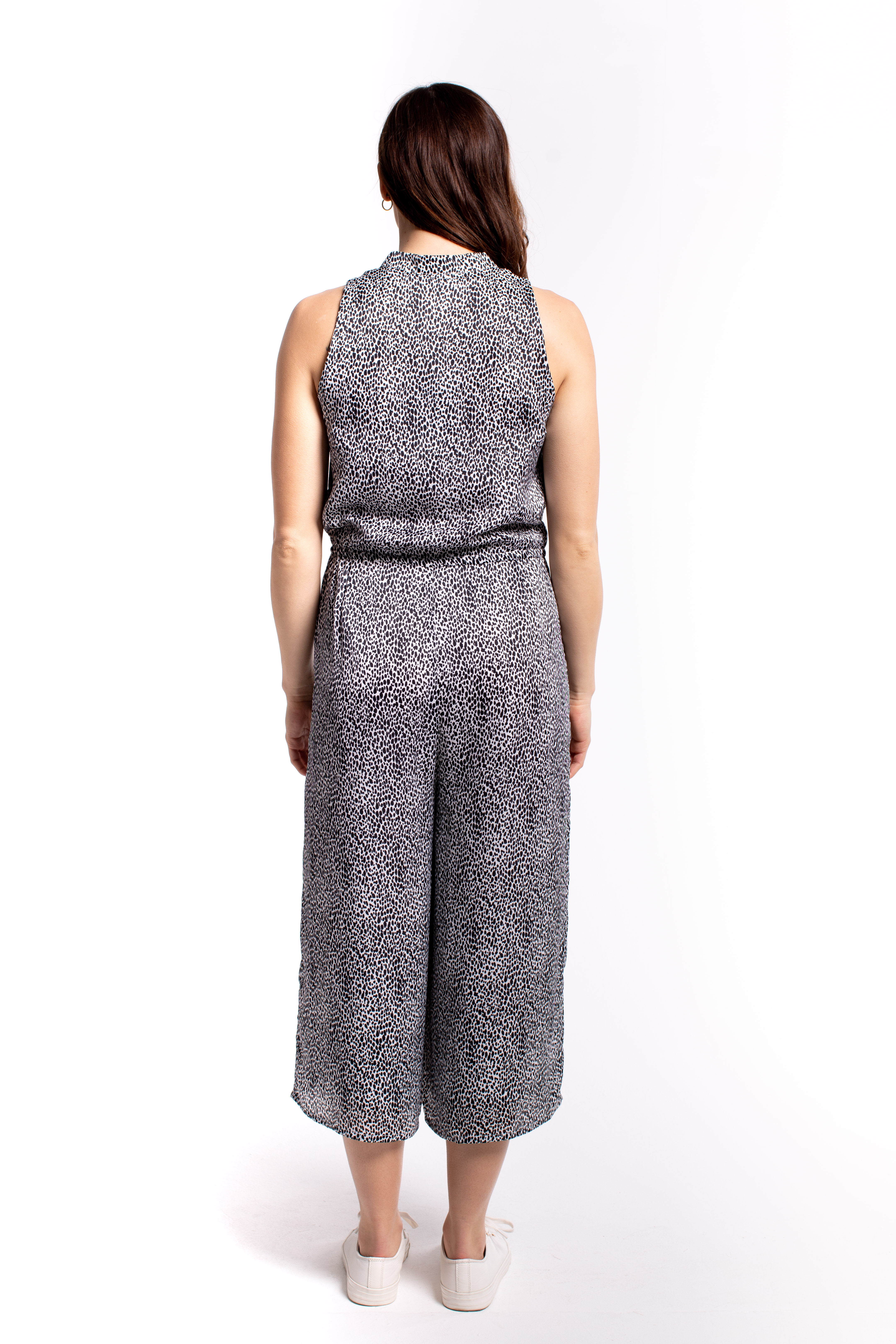 Opt for a jumpsuit instead of a dress for a sophisticated-chic style that earns compliments at every occasion. Featuring a button neckline, drawstring waist and a wide leg.