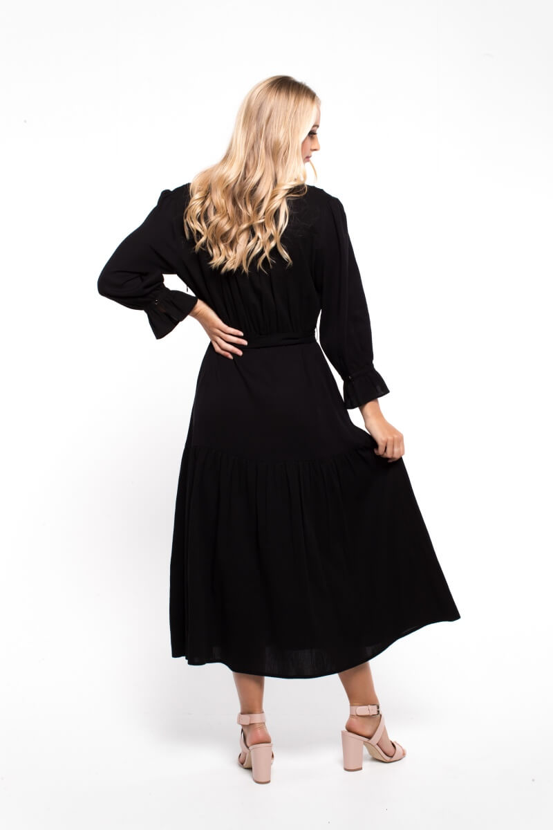 A flowy dress with flattering fit and long sleeves to help transition into spring.