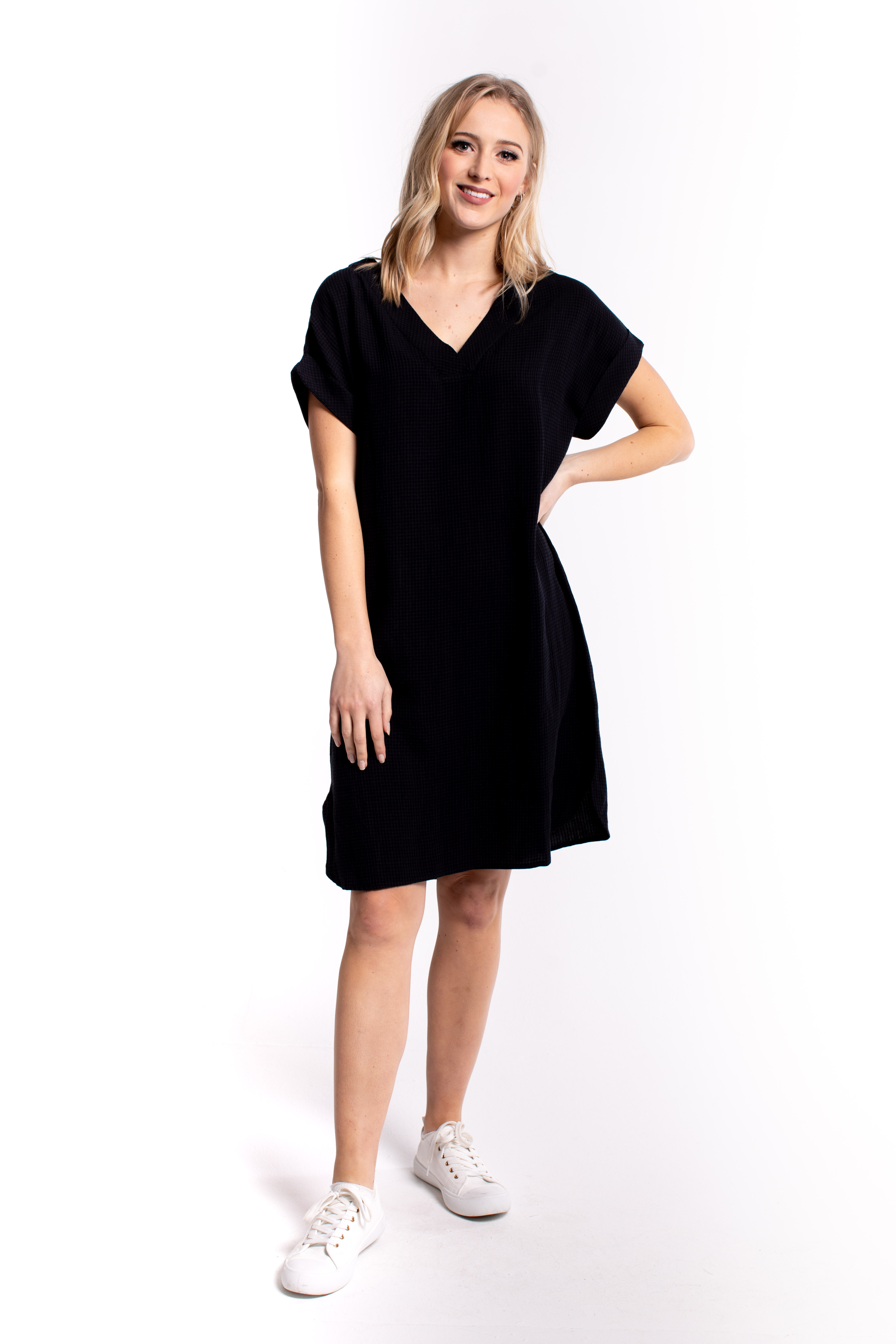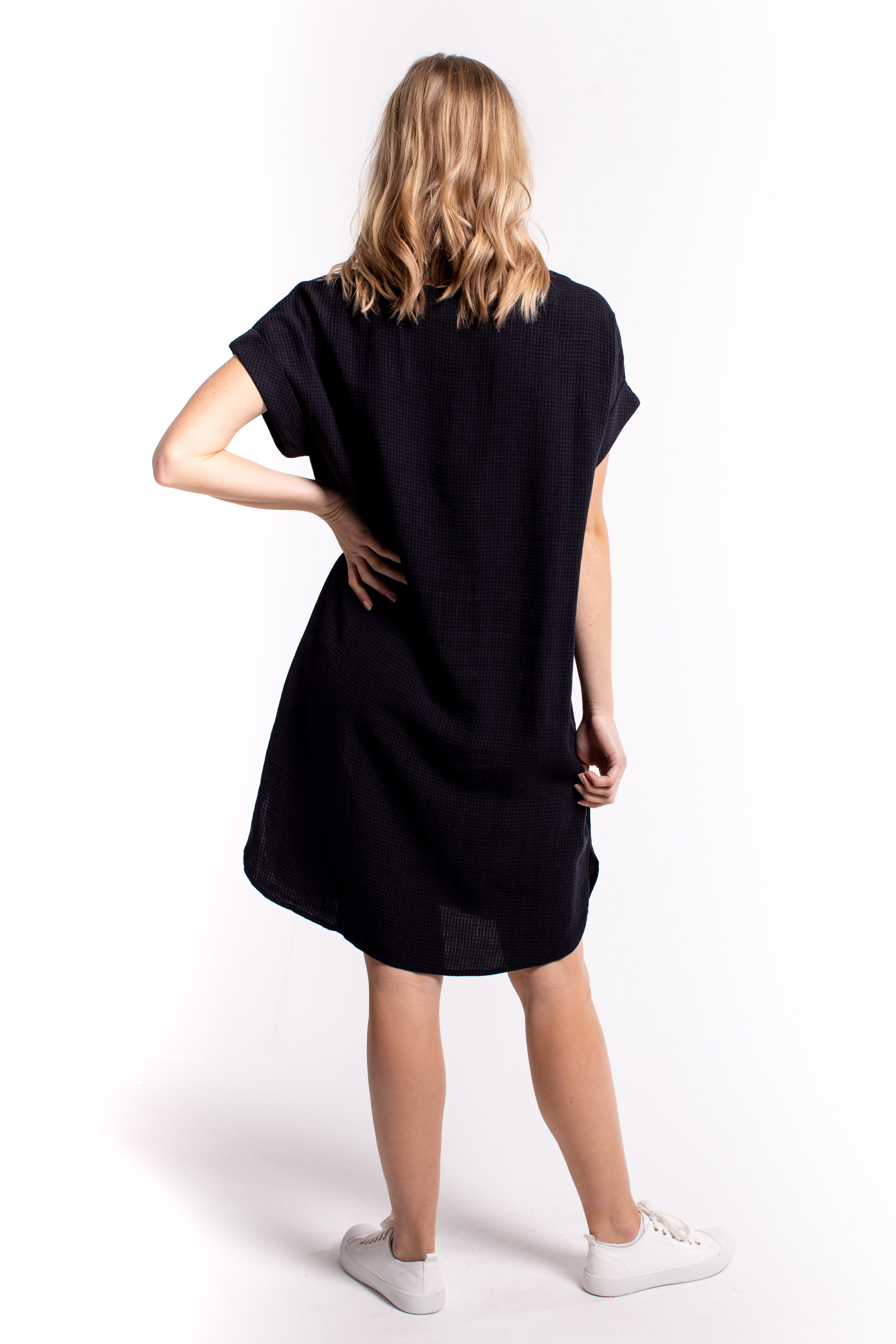 The whisper dress gives you low-key chic for work or play in this short-sleeve dress. A fantastically versatile piece.